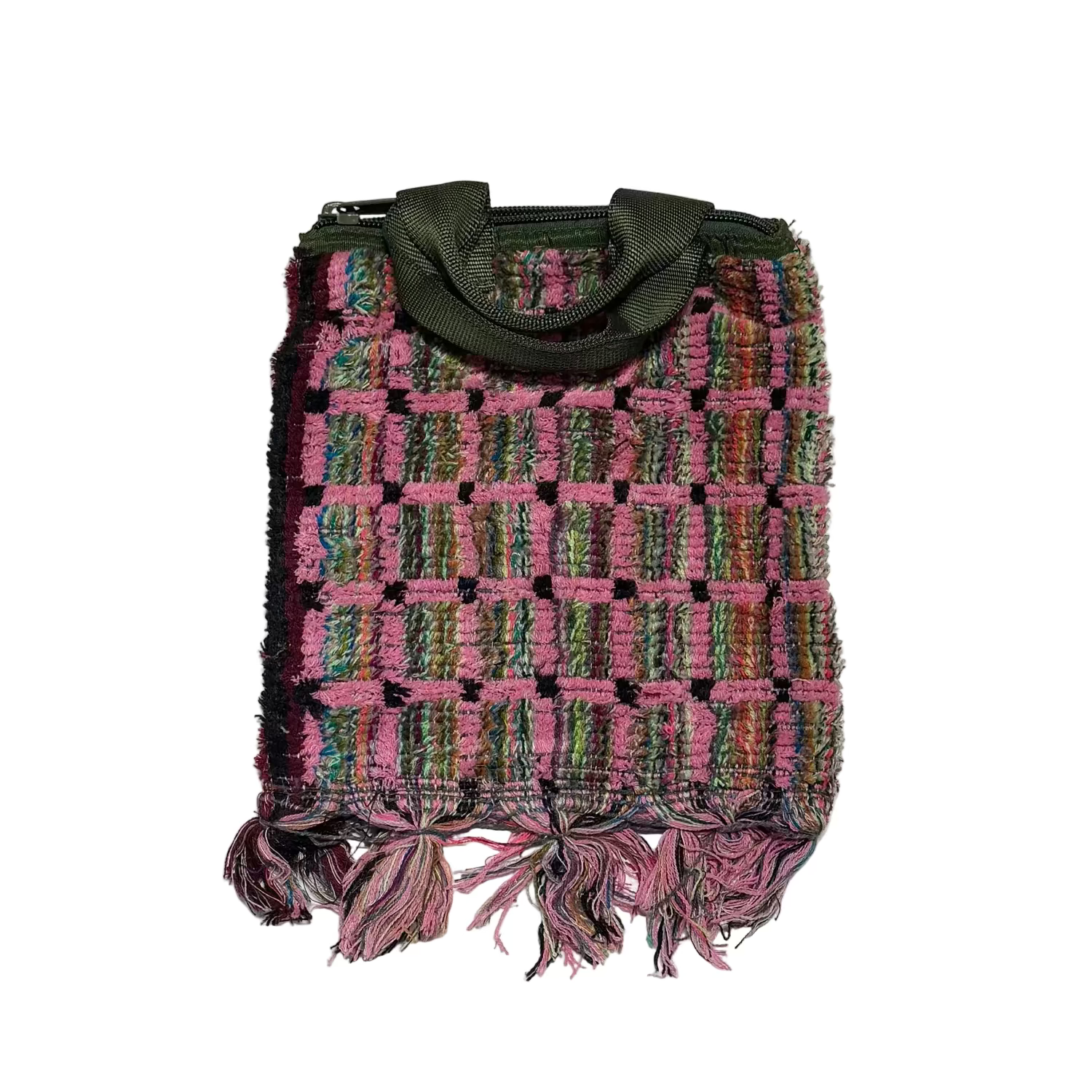 Once used as vibrant seat covers for trucks in India, this richly hued and beautifully textured fabric has been reimagined into stylish, one-of-a-kind totes that will for sure become an every day essential. Each bag is hand-constructed with two sturdy belt straps, adding a rugged, upcycled charm. The designs are assorted, making every piece a unique statement, some featuring fringe or other distinctive details that enhance their artisanal character. With bold patterns and a raw, handcrafted appeal, these totes celebrate sustainable fashion, transforming utilitarian origins into a wearable work of art.